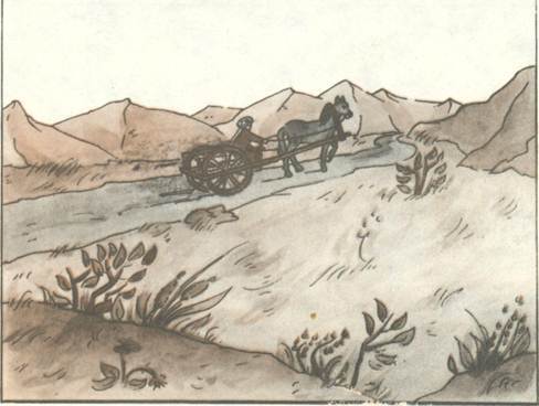 Шли они, шли, прошли полдороги. Устал осёл, кряхтит, еле дышит.