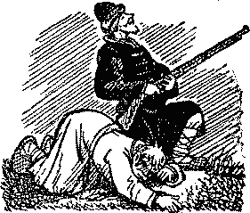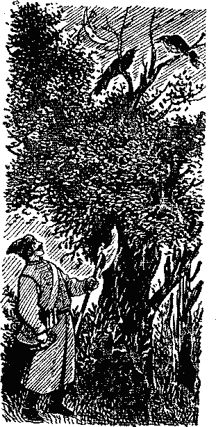 Летят и видят, стоит внизу на дороге старик и целится из ружья, а нигде ни птицы, ни зверя не видать.