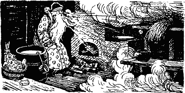 Мороз Морозович дунул, плюнул в один угол да в другой, и сразу жар поубавился; дунул, плюнул в третий угол да в четвертый и совсем баню остудил.