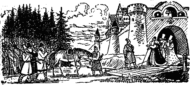 Опустился летучий корабль прямо на царский двор.