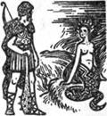 Огорченный Геракл пустился на поиски пропавшей колесницы. Он обошел всю огромную степь, но не встретил ни одного человека, у которого мог бы спросить о пропаже. Наконец он очутился в горной стране тавров. В одной из пещер Геракл увидел странное существо: полудеву, полузмею. Изумился он, но вида не подал.