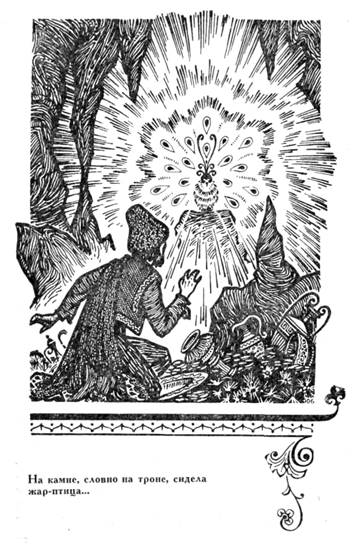 Прикрыв шапкой глаза от слепящего света, он смело подошел к дивной Птице. И она не убежала от храбреца. Взял он ее осторожно, завернул в мешок и двинулся в обратный путь.