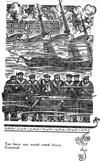 Люди говорили, что после боя странно было видеть: солдаты, те лежали на земле, будто прощаясь с нею, а матросов нет. По ночам мертвые матросы уходили в воду. Уходили и стеной становились там под водой у своих кораблей. Через такую стену никакой вражеский корабль не пройдет. Мертвые матросы крепко, по-братски держались за руки и не пустили врага… Так было под водой синей бухты Северной.