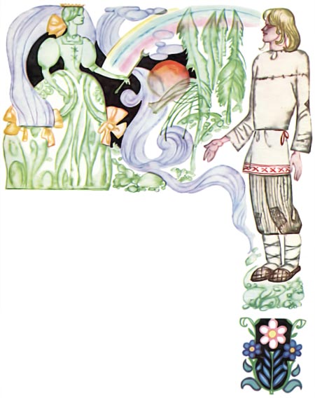 Утром царевич просыпается, смотрит – в изголовье рубашка лежит, разноцветными шелками вышита. Спрашивает: