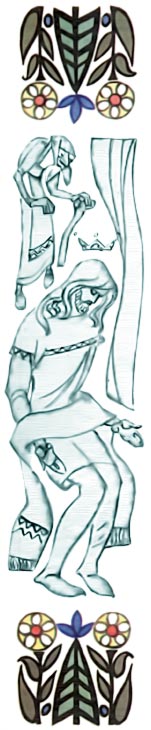 Только сестра вышла из избы, брат взял топор, разрубил порог на куски и сложил обратно. Вошла сестрица в избу, задела за порог подолом – порог и рассыпался. Говорит брат сестре: