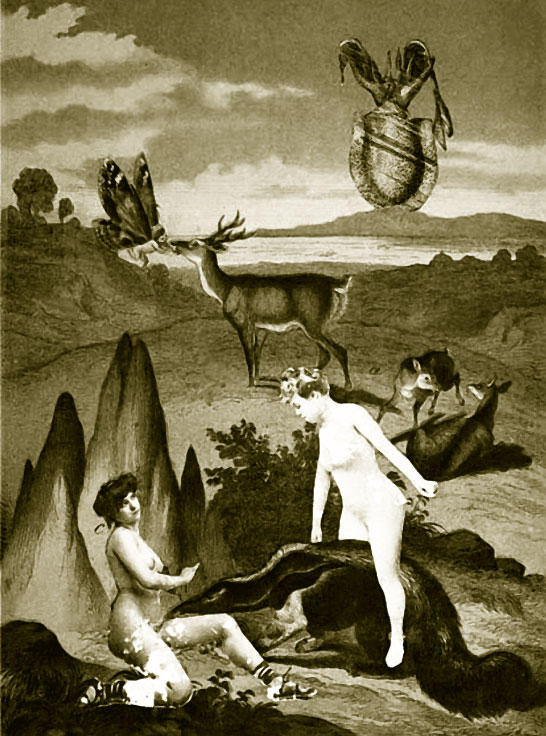 Пейзаж с двумя обнаженными женщинами. Коллаж Поля Элюара
