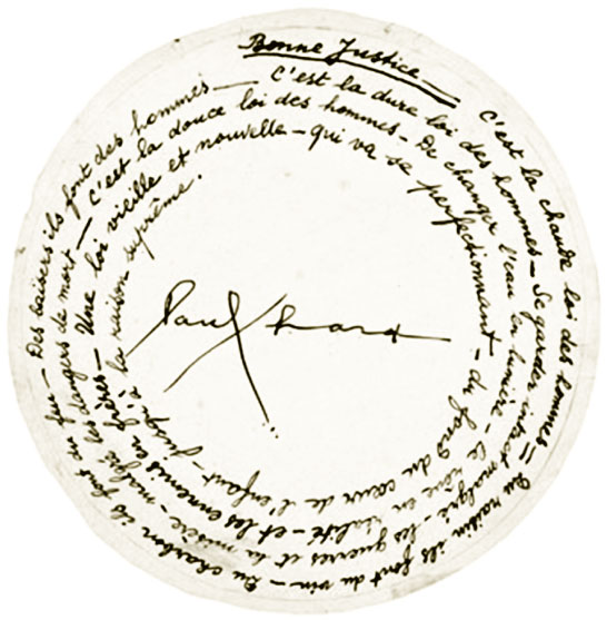 Рукописное стихотворение Поля Элюара «Хорошее правосудие»