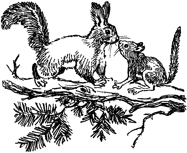 Он понял правильно: Дымка перестала его бояться, и дело быстро пошло на лад. Бельчата росли ещё быстрее. Мать и отец уже вместе дружно следили, как весело прыгают по веткам около гнёзда маленькие белочки.