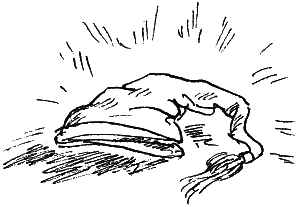 В тот же миг сверху посыпались всевозможные шапки, шляпы, колпаки. Они усеяли берег, некоторые упали в озеро. Круглая шляпа, медленно покачиваясь, поплыла в темноту.