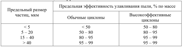 Табл. 3. Эффективность циклонных очистителей