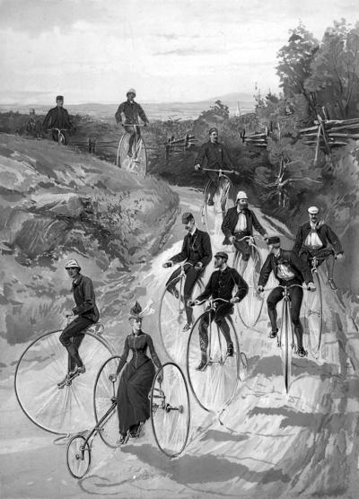 В 1870 году англичанин Хилман стал продавать первые полностью металлические велосипеды с высокими колесами. Диаметр переднего колеса составлял 54 дюйма, что примерно в два раза больше, чем колесо среднего современного дорожного велосипеда.
