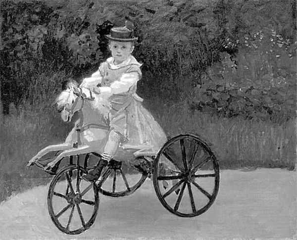 Жан Моне на трёхколёсном велосипеде-коне. Художник К. Моне