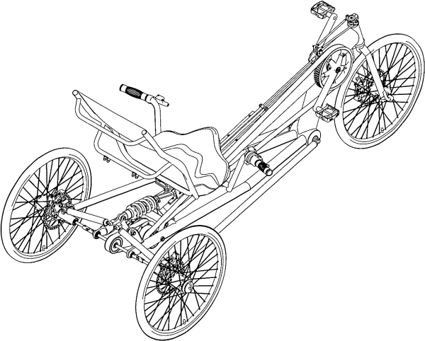 Если азиаты не стесняются выпускать трициклы серийно, причем как пассажирские, так и грузовые варианты, то в Европе дела с этим обстоят похуже. В основном трициклы сооружают любители, переделывая двухколесные машины. Например, московский изобретатель А.Е. Миронов, в прошлом военный юрист, а ныне пенсионер, создал трицикл, прямо сказать, не от хорошей жизни. При несчастном случае он повредил спину и на обычном велосипеде ездить уже не мог. А сидеть дома тоже надоедает. И тогда он из узлов и частей обычных велосипедов создал веломашину с удобным креслом. Получилась весьма устойчивая, неприхотливая трехколесная конструкция, на которой Андрей Евгеньевич смог ездить, не боясь перегрузить травмированную спину.
