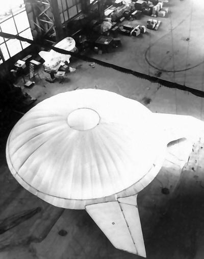 Создатели термоплана придумали еще и вот какую интересную штуку. Как показали продувки в аэродинамической трубе, «летающая тарелка» имеет свойства крыла-диска. То есть, как уже говорилось, при движении с достаточно высокой скоростью к аэростатической подъемной силе добавляется еще и аэродинамическая. При этом удельная нагрузка на крыло в 15—20 раз меньше, чем, например, у всем известного «шаттла».