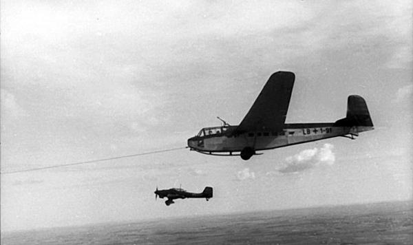 Немцы в середине Второй мировой войны срастили крыльями два бомбардировщика Не-111, вставив между ними дополнительный мотор. Такой «сиамский близнец» Heinkel-Zwilling предназначался для буксировки гигантских планеров, с помощью которых Геринг надеялся наладить снабжение продуктами и боеприпасами окруженной группировки Паулюса в Сталинграде. Однако гитлеровцы сдались раньше, чем аэропоезда начали летать более-менее регулярно.