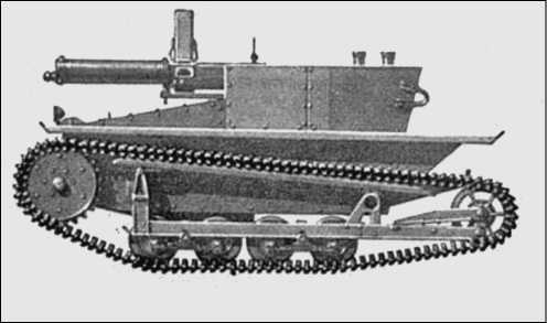 В Кубинке, в знаменитом танковом музее, кроме громоздких танков-мастодонтов, можно увидеть небольшую, со стол величиной танкетку. Своим ромбовидным кузовом, который целиком охватывался гусеницами, она очень напоминает первые английские танки серии Mk, но настолько мала (высота машины – 75 см), что в ней не удалось бы разместиться даже самому низкорослому танкисту.