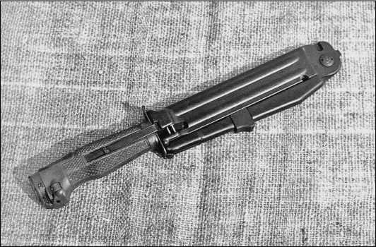 Для выстрела нож поворачивают рукояткой вперед. Для прицеливания служат прорезь на ограничителе ножа и мушка на головке рукоятки. Прицельная дальность – 25 м. На этом расстоянии пуля пробивает 2-мм стальную пластину.