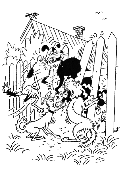 И надо же было случиться, чтобы городской курцхар Тимка, потерявший главные качества обольстителя, но не бросивший тем не менее блудливые манеры обращения, повстречался впервые Полкану в тот момент, когда Тимка пытался втереться в доверие полкановского гарема. Разогнавшись до скорости, граничащей с первой космической, пастуший пес сообщил курцхару импульс, от которого повалился по принципу «домино» весь уличный забор.