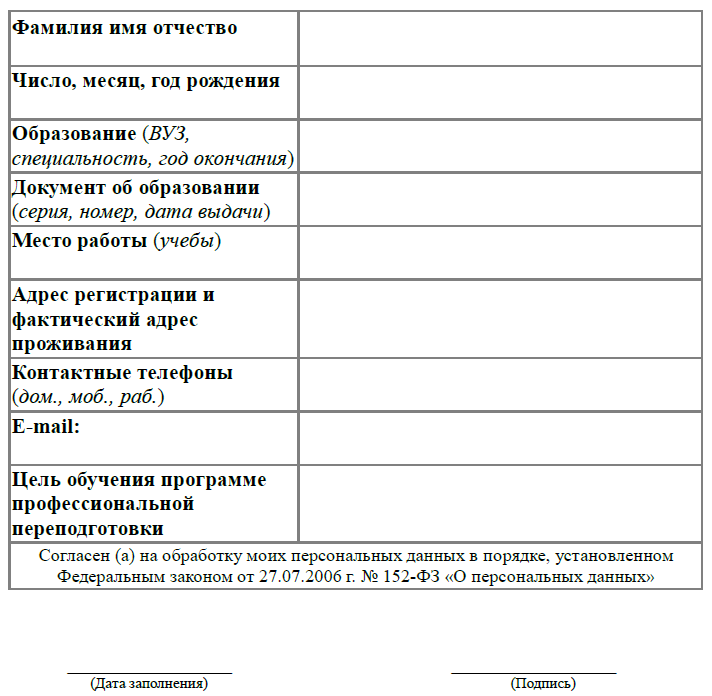 Уровень получаемого образования: профессиональная переподготовка.