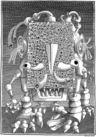 Порадилися сталевооки і збудували машину, яка збудувала машинисько, яке збудувало машинище, та таке, що аж найближчі зірки змушені були позадкувати. А в тому найбільшому – та, з трибами на мастилі, а в самій середині машинка‑страшинка, бо вже не до жартів.