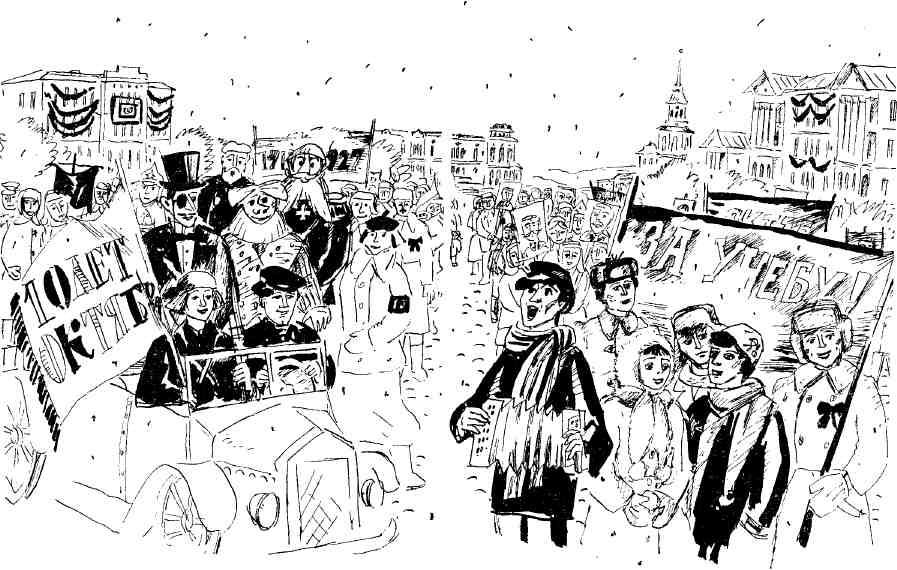 Мы послушались Лениного совета и стали играть в снежки, а народ около клуба прибывал и прибывал. У многих алели повязки, на которых было написано золотыми буквами: «Десять лет Октября». Вместе с Николаем Михайловичем появился и дед Герты. На днях он заходил к Пиньжаковым и советовался, можно ли органисту польского костела пойти на демонстрацию, посвященную десятилетию Октябрьской революции.