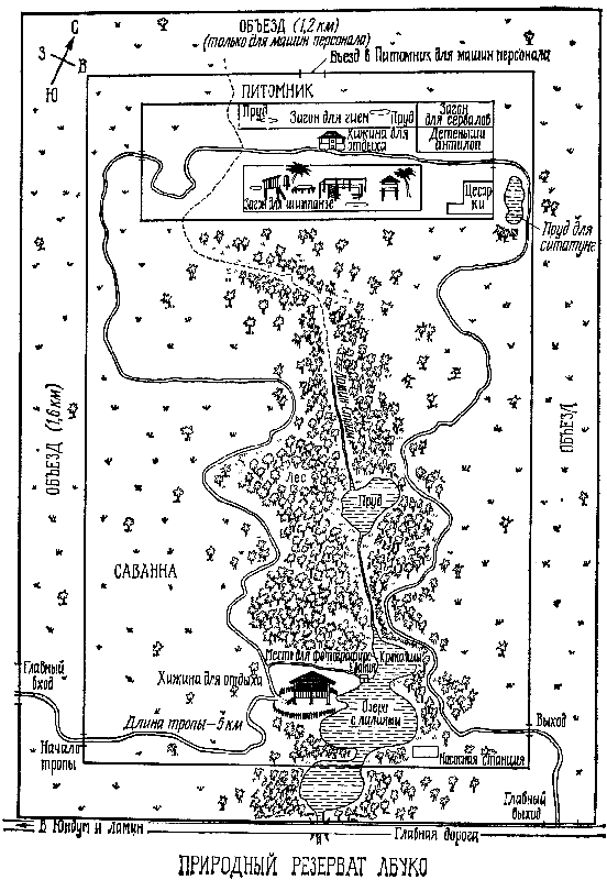 Если бы не одно происшествие, мы вряд ли сумели бы найти решение этой проблемы. Мы обнаружили водосборную зону Абуко, расположенную в трех километрах от Юндумской станции. Зона эта находилась в стороне от главной дороги и была со всех сторон окружена изгородью, частично заросшей густой растительностью. В самом близком к дороге месте за загородкой стояли насосная станция. На воротах висела большая вывеска: «Вход только по служебной необходимости». Поскольку ни у кого из нас не возникало никакой надобности, хотя бы отдаленно напоминающей служебную, мы сотни раз проходили мимо ворот, даже не пытаясь заглянуть туда. Так продолжалось бы и по сей день, если бы однажды, в начале 1968 года, к отцу не пришел Калилу, крестьянин из соседней деревни Ламин. Он рассказал, что на его свиней напал леопард, и в качестве доказательства предложил посмотреть остатки одного из убитых хищником животных.