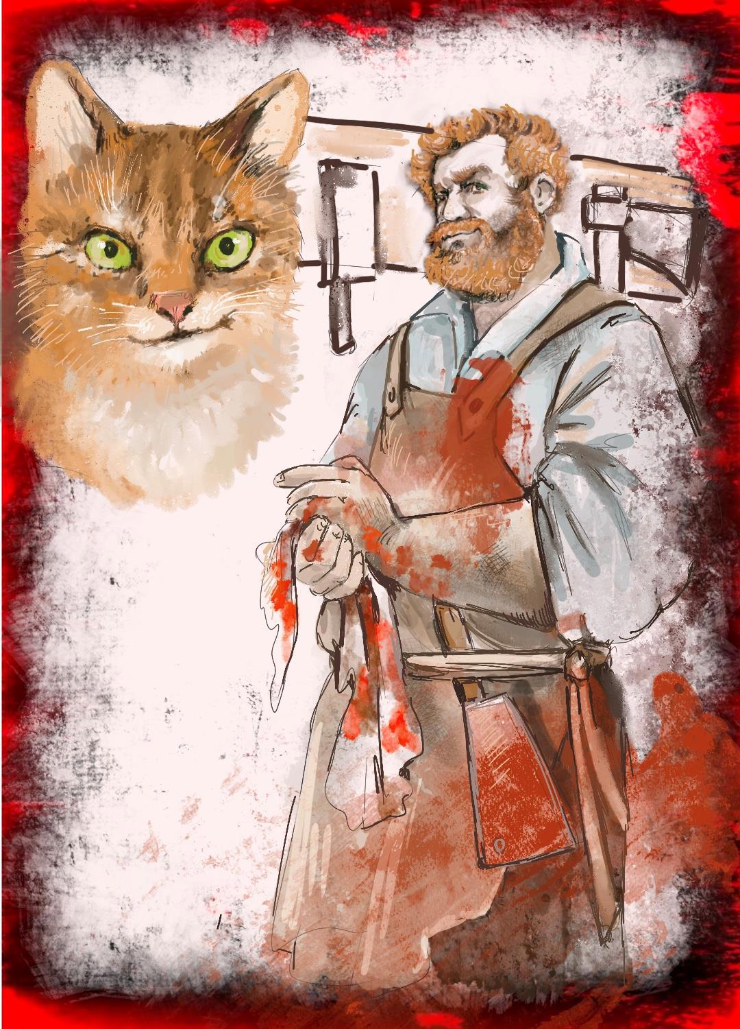 Обоняние буквально втащило Михаэля в небольшой павильон. Но вместо мяса оборотень увидел лишь одного печального человека с маленькими усиками. Уже засветло он вовсю трудился над разделкой. Да получалось у него откровенно плохо.