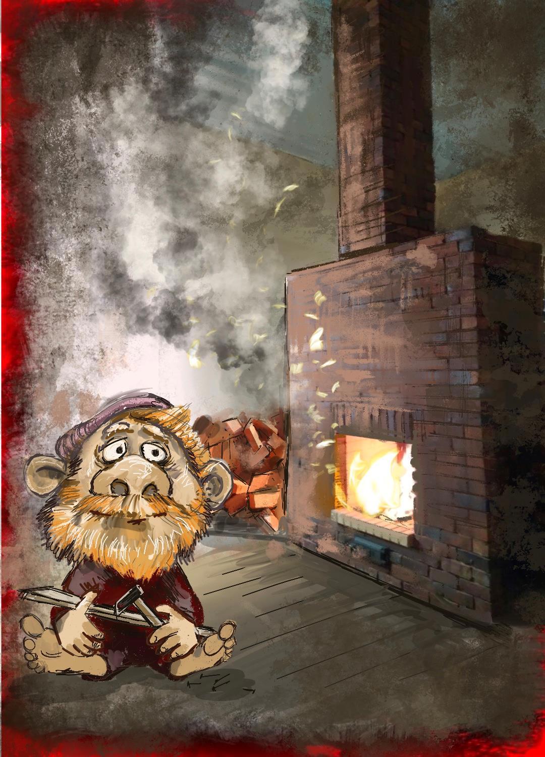 Сначала Топот выложил камин с трубой. Тот гордо выпускал на улицу колечки дыма, пугая бабу Нюру на предмет пожаров в доме. Но сколько бы та не звонила по горячему номеру, ей говорили, что труб в хрущёвках не бывает. Не слушая возмущённых объяснений, пожарные бросали трубку.