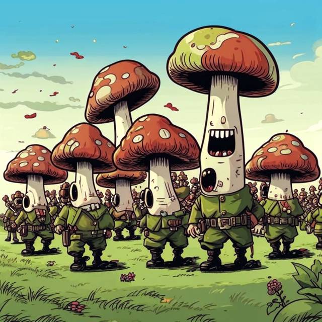 Зелёные солдаты шли в ногу, маршируя и взяв в руки веточки. Сложно сказать сразу, собирались ли они с них стрелять, но выглядело ужасающе.