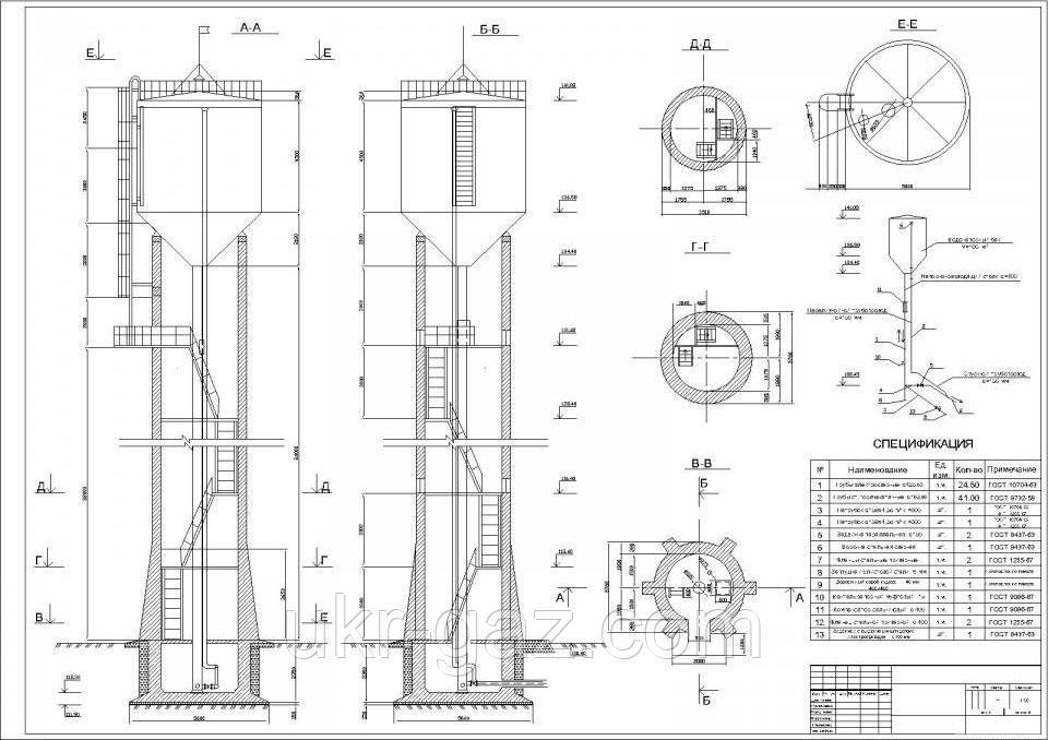 Через часик башня была готова. Самая что ни на есть обычная башня Рожновского, уместилось пара проекций и четыре ключевых сечения. Видно раньше Боря рисовал быстрее. Даша утомилась и начала клевать носом.
