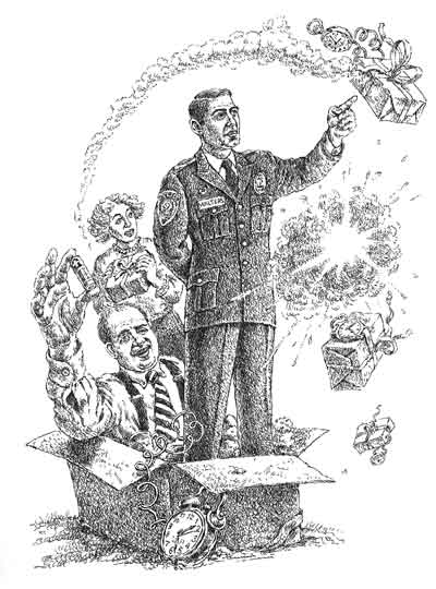 – Женщина способна представлять опасность для общества в качестве, скажем, разносчицы бацилл тифа. Но только не как бомбометательница. – Сержант Уолтерс стряхнул с обшлагов меловую пыль. – Мы можем и дальше продолжать наши логические выкладки, не рискуя ошибиться. Взрывник не женат. Вероятно, живет вместе с матерью. Или со старшими сестрами. Или с тетушками. Человек он неприметный, и если на него обращают внимание, то лишь благодаря его вежливости и предупредительности. Он охотно оказывает мелкие услуги. Черт возьми, да он может оказаться соседом любого из нас! Вероятно, он не курит и почти не потребляет спиртного.