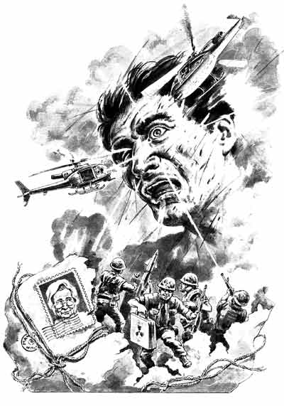 «Вьетнамский сундучок» раскачивался. Неожиданно он перевернулся и с глухим стуком упал на ковер. Крышка на петлях приоткрылась. Крошечные пехотинцы – ростом сантиметра по четыре – стали выползать через щель. Реншо не мигая наблюдал за ними, не пытаясь разумно объяснить происходящее. Он только прикидывал, какая опасность угрожает ему и что надо сделать, чтобы выжить.
