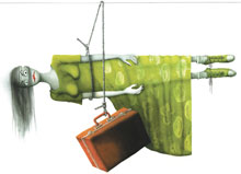 – Видишь чемодан? – крикнула она. – Привяжи к нему веревку и спусти его.
