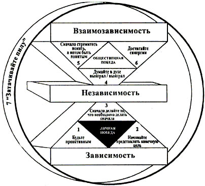 Для создания в жизни эффективного Р/РС-баланса требуется проявить инициативу. Инициатива требуется и при овладении Семью Навыками. Изучая остальные шесть навыков, вы увидите, что овладение каждым из них зависит от степени развитости вашего мускула проактивности. Каждый навык налагает на вас ответственность за действия. Если вы будете ждать воздействия на вас со стороны, вы непременно окажетесь под этим воздействием.