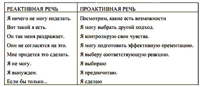 Поскольку наша позиция и поступки проистекают из нашей парадигмы, их тщательный анализ часто может дать представление о природе «карт», лежащих в их основе. Реальным индикатором степени нашей проактивности является, например, наша речь.