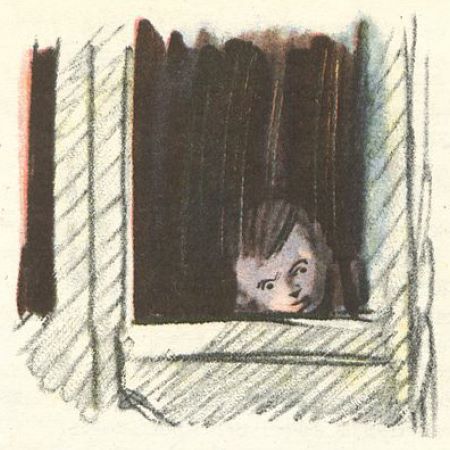 И вдруг вижу: в окно смотрят снаружи два глаза голубых. Низкое оконце. Видно, маленький человек смотрит.