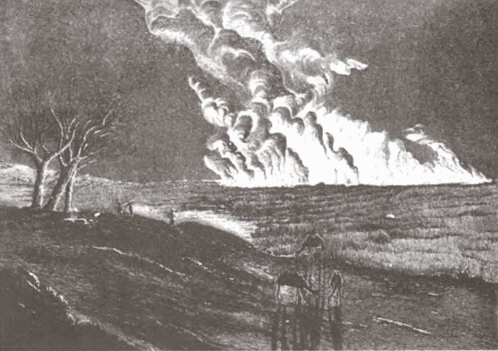 Скоро разразился настоящий ураган. Все мои люди ухватились за веревки палатки, которую иначе унесло бы. Град посыпался с такой силой, что в воздухе засвистело. Животные наши, испуганно озираясь, перестали щипать траву. Но через пять минут все прошло. Ураган пронесся к востоку. На западе не виднелось новых туч. Спокойствие восстановилось, и настал чудный звездный вечер. Но и это продолжалось недолго: к полуночи окрестность окуталась необычайно густым туманом, который скрыл от нас даже гору, у подошвы которой расположен был наш лагерь.