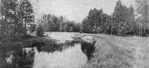 Мягко стелется среди леса узкая речушка, шумят березы. Здесь их неожиданно много. Старые, молодые, они вольно рассыпались среди темных сосен, опоясывая празднично белой лентой место бывшей усадьбы.