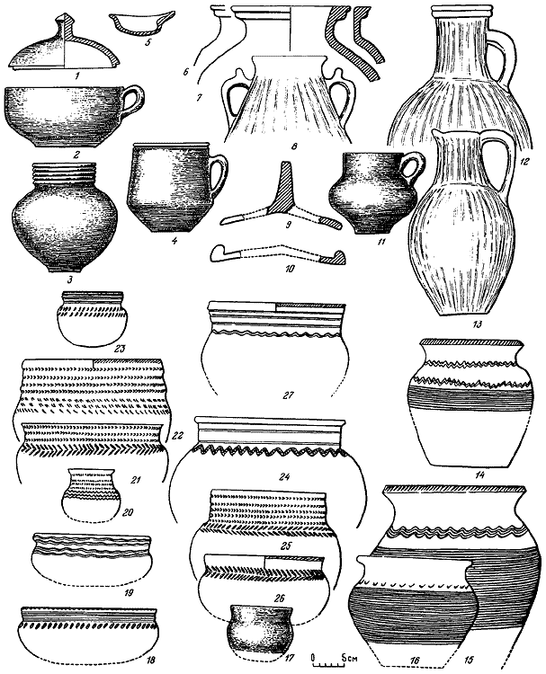 Рис. 80. Керамика Волжской Болгарии. По данным Т.А. Хлебниковой, А.X. Халикова, П.А. Кокориной (1-27). Составила С.А. Плетнева.