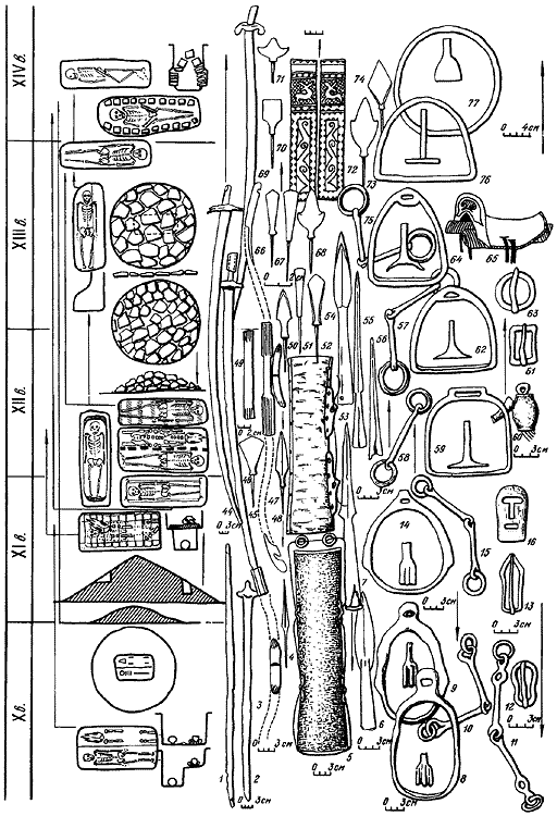 Рис. 73. Культура тюркоязычного населения Саяно-Алтая XIII–XIV вв.