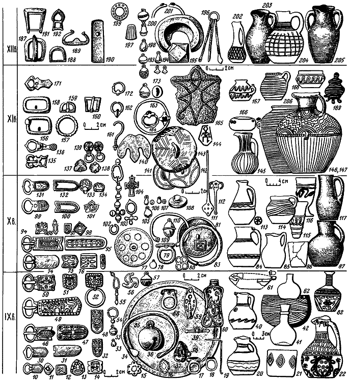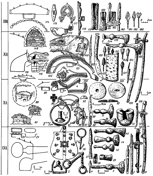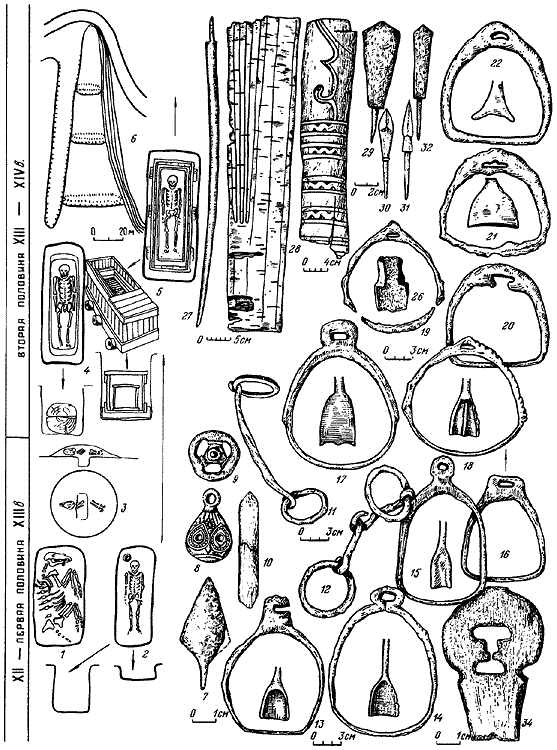 Рис. 71. Культура тюркизирующегося населения южно-таежной зоны Приобья XI–XII вв. (Еловский могильник).