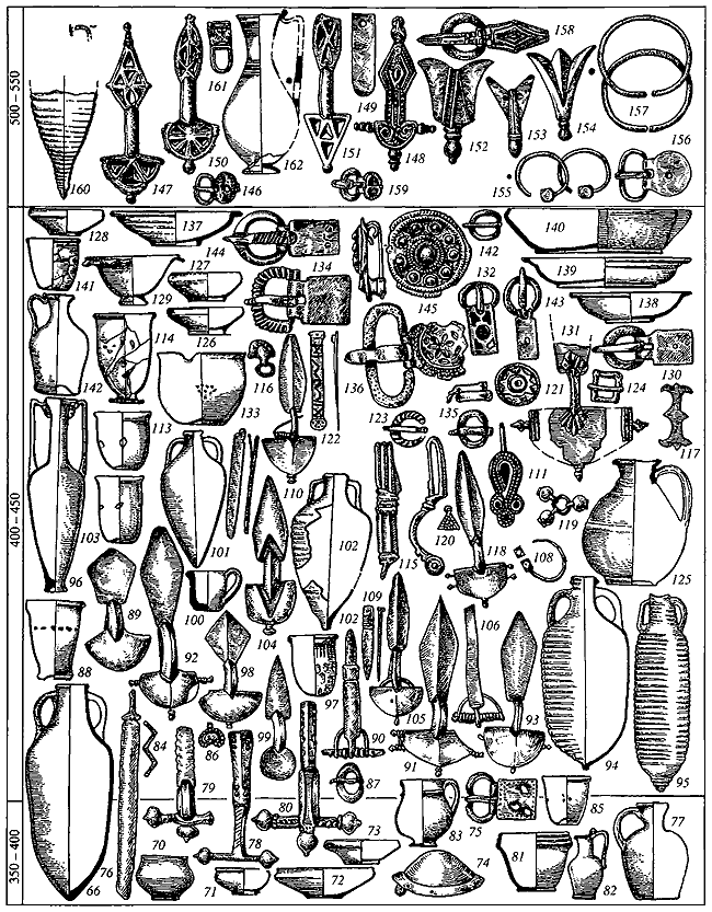 Таблица 14. Материалы 1-й хронологической группы (последняя четверть IV – первая половина V в. н. э.). Составлена И.П. Засецкой.