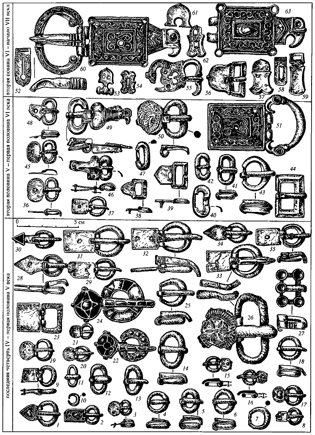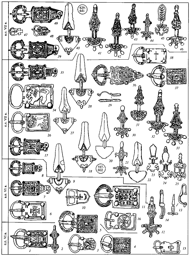 Таблица 20. Хронология малых византийских пряжек и поясных наборов византийского круга. Составлена по: Айбабин А.И., 1999, с. 316–318, табл. XXX–XXXI.