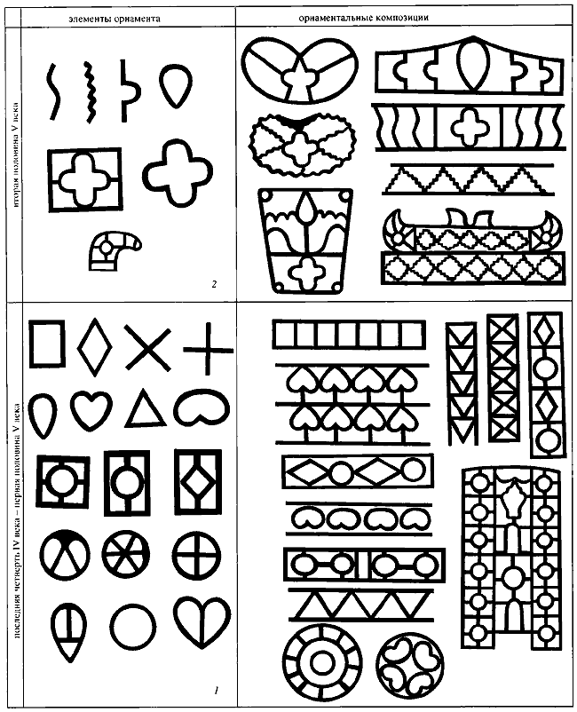 Таблица 18. Сравнительная таблица четвертой и пятой стилистических групп изделий, исполненных в технике перегородчатой инкрустации. Составлена И.П. Засецкой.