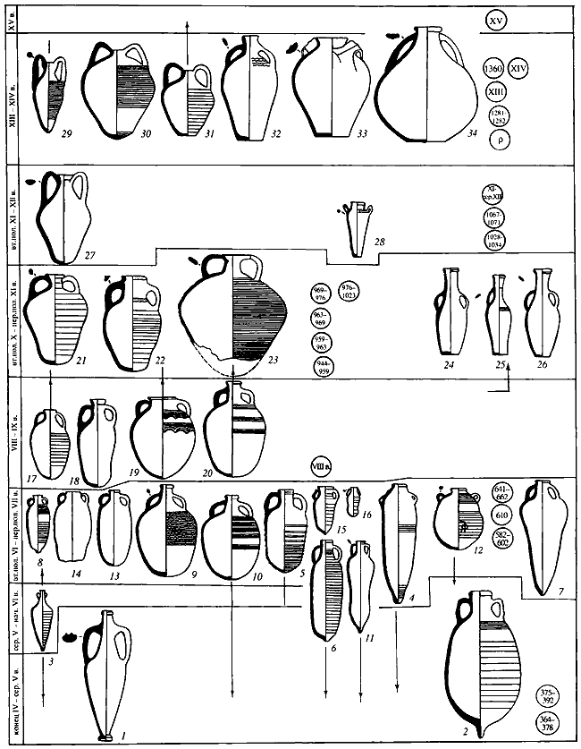 Таблица 23. Хронология средневековых амфор Херсона. Составлена А.В. Сазановым.