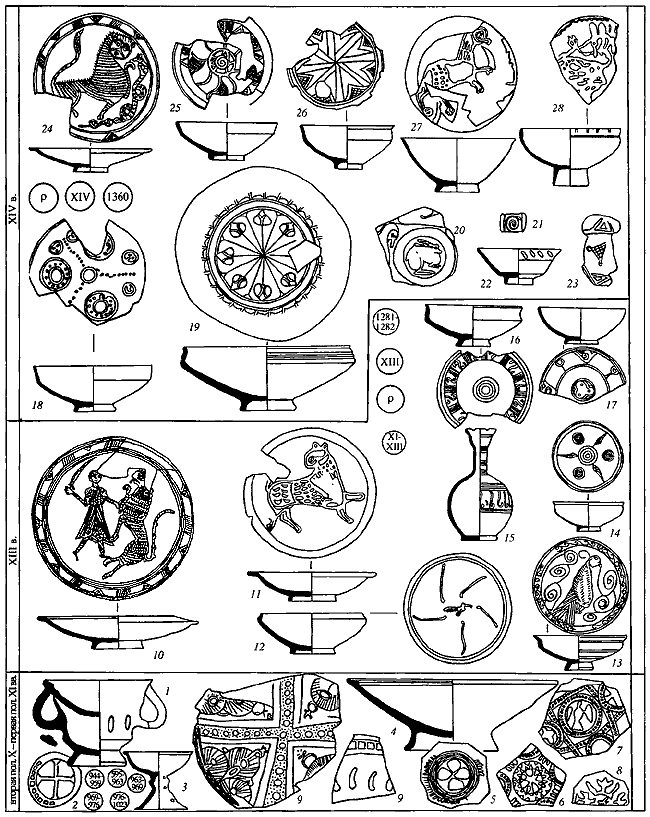 Таблица 59. Поливная керамика Херсона X–XIV вв. Составлена А.В. Сазановым.