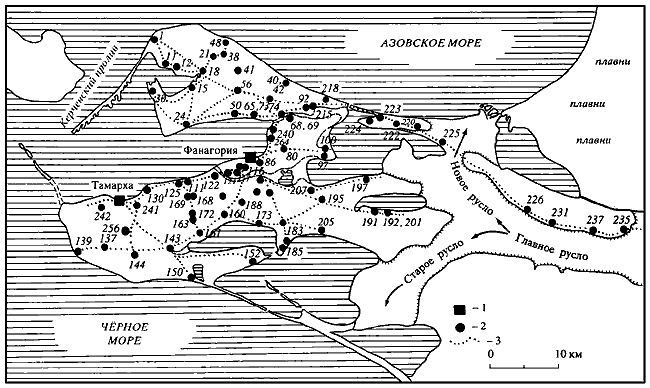 Цифра в скобках обозначает порядковый номер памятника на археологической карте Таманского полуострова (Паромов Я.М., 1992).