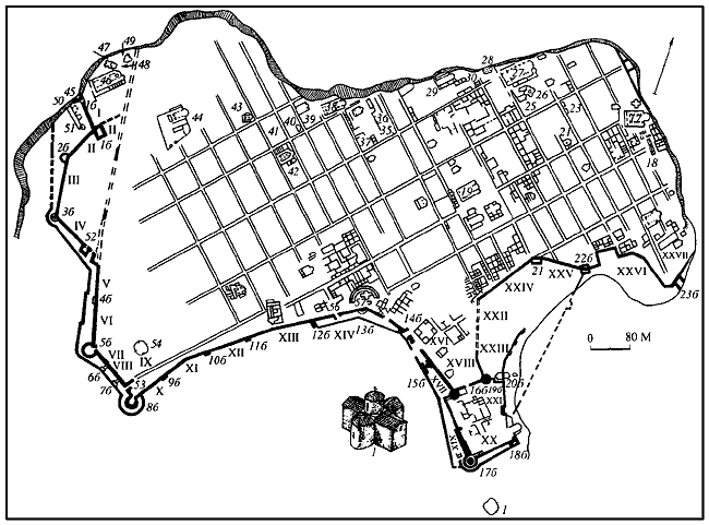 Рис. 3. План средневекового Херсона. Составлен А.И. Айбабиным.