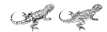 Рис. 4.6. Такырная круглоголовка (слева) лучше вооружена, чем ее близкая родственница – сетчатая круглоголовка (справа). Поэтому для такырной круглоголовки оказывается полезным использовать коммуникативные сигналы вместо прямых физических воздействий. А для сетчатой круглоголовки, наоборот, выгоднее «сэкономить» на коммуникации: поскольку ее укусы не так страшны, тратить много ресурсов на избавление от них нерентабельно.