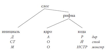 Рис. 6.4. Инициаль, рифма, ядро и кода – так часто называют части слога. Особенно это принято в традиции изучения китайского и подобных ему «односложных» языков.